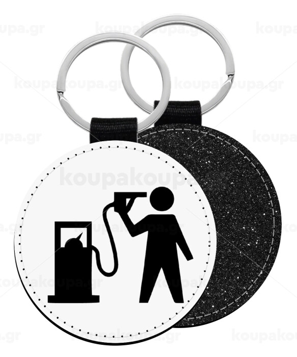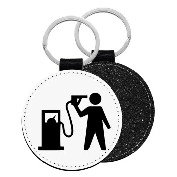 Fuel crisis, Μπρελόκ Δερματίνη, στρογγυλό ΜΑΥΡΟ (5cm)