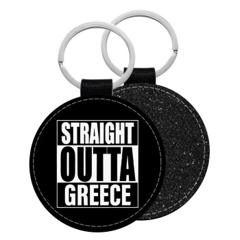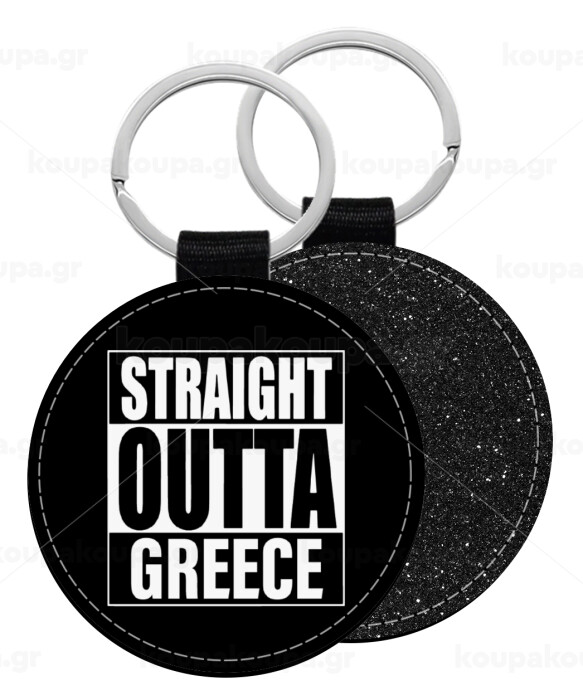 Straight Outta greece, Μπρελόκ Δερματίνη, στρογγυλό ΜΑΥΡΟ (5cm)