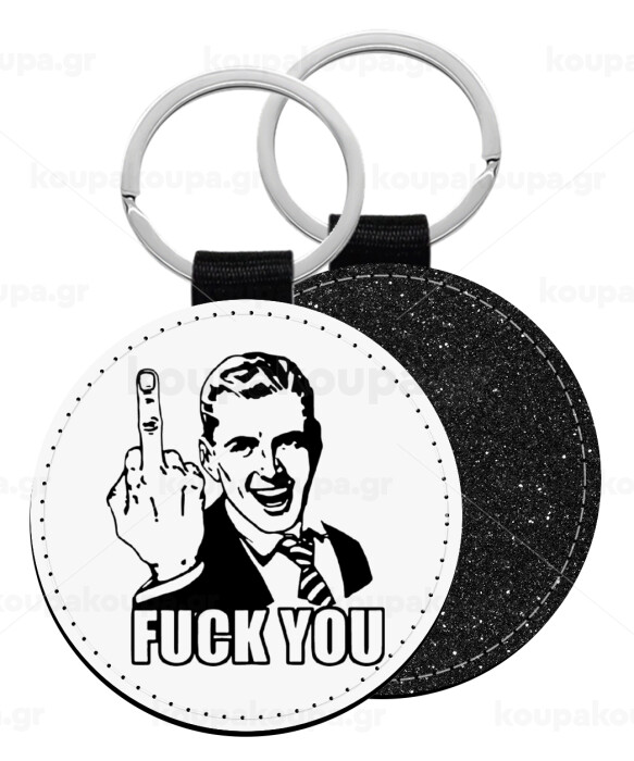 The finger, Μπρελόκ Δερματίνη, στρογγυλό ΜΑΥΡΟ (5cm)