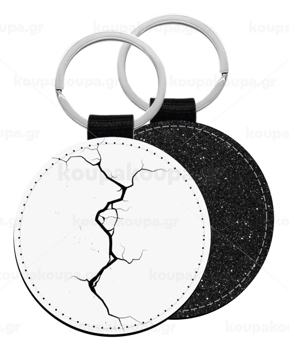 Cracked, Μπρελόκ Δερματίνη, στρογγυλό ΜΑΥΡΟ (5cm)