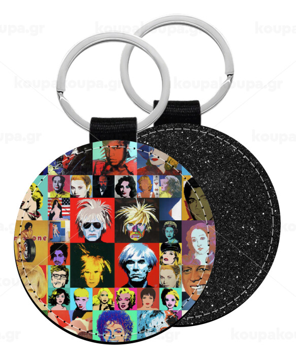 Warhol pop art, Μπρελόκ Δερματίνη, στρογγυλό ΜΑΥΡΟ (5cm)