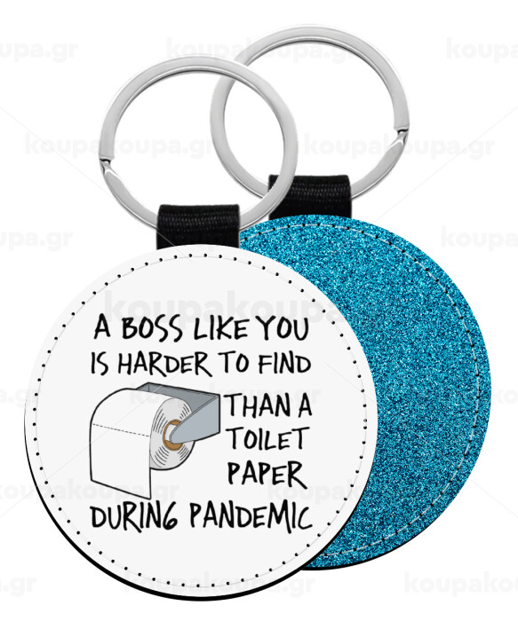 A boss like you is harder to find, than a toilet paper during pandemic, Μπρελόκ Δερματίνη, στρογγυλό ΜΠΛΕ (5cm)