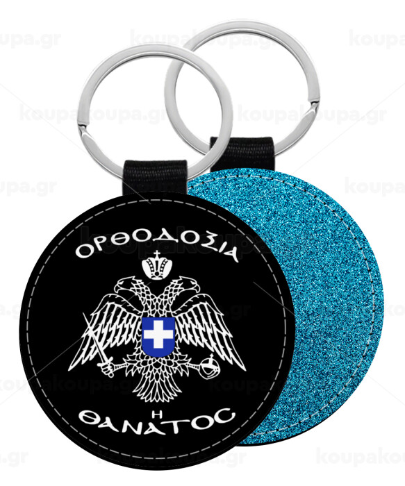 Ορθοδοξία ή Θάνατος, Μπρελόκ Δερματίνη, στρογγυλό ΜΠΛΕ (5cm)