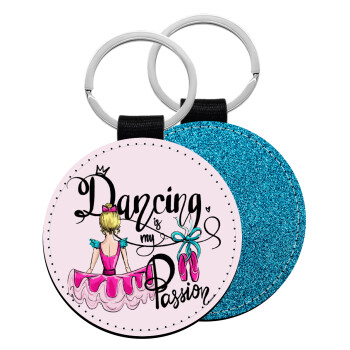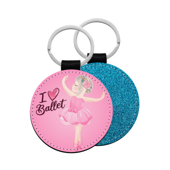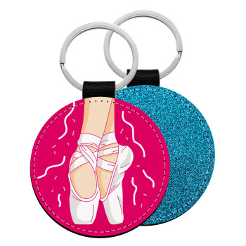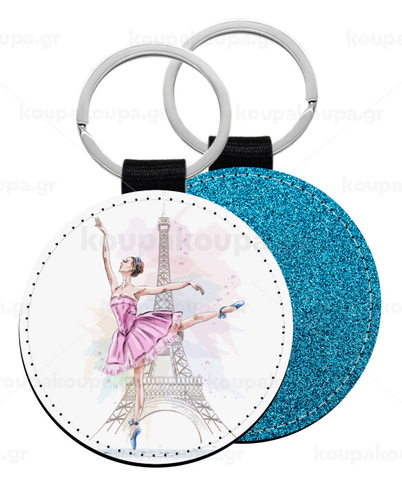 Ballerina in Paris, Μπρελόκ Δερματίνη, στρογγυλό ΜΠΛΕ (5cm)