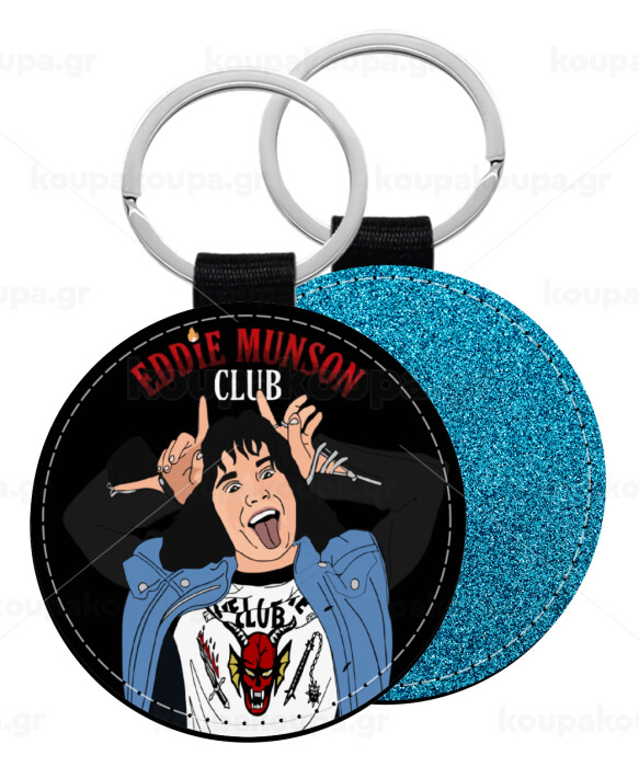Eddie Munson, Μπρελόκ Δερματίνη, στρογγυλό ΜΠΛΕ (5cm)