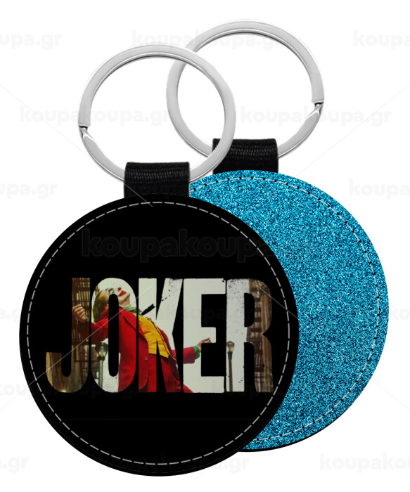 Joker, Μπρελόκ Δερματίνη, στρογγυλό ΜΠΛΕ (5cm)
