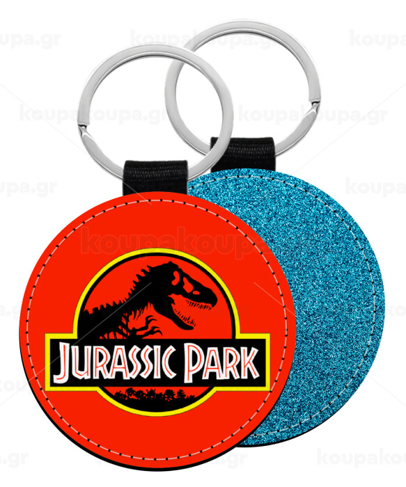 Jurassic park, Μπρελόκ Δερματίνη, στρογγυλό ΜΠΛΕ (5cm)