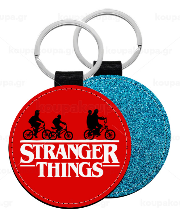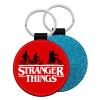 Stranger Things red, Μπρελόκ Δερματίνη, στρογγυλό ΜΠΛΕ (5cm)