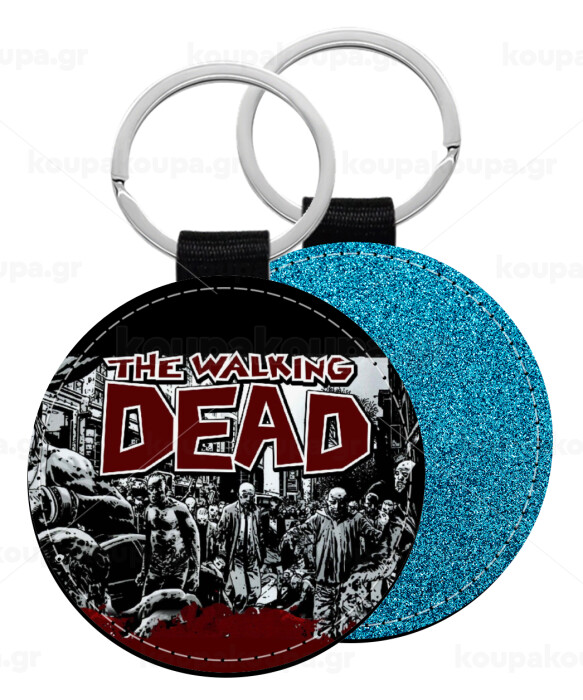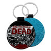 The walking dead comic drawing zombie, Μπρελόκ Δερματίνη, στρογγυλό ΜΠΛΕ (5cm)