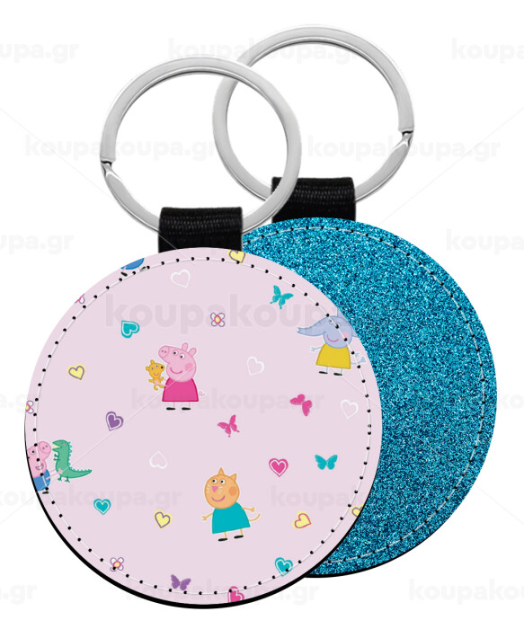 Πέππα το γουρουνάκι και οι φίλοι της, Μπρελόκ Δερματίνη, στρογγυλό ΜΠΛΕ (5cm)