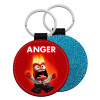 Anger, Θυμός, Μπρελόκ Δερματίνη, στρογγυλό ΜΠΛΕ (5cm)