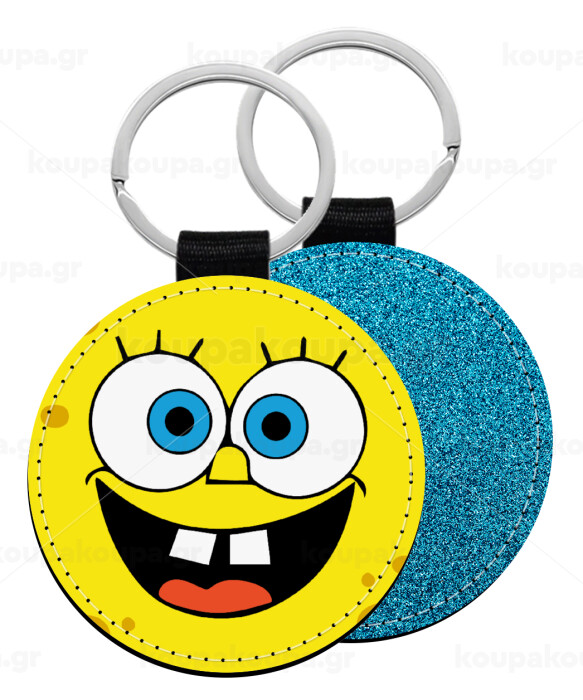 Μπομπ, Μπρελόκ Δερματίνη, στρογγυλό ΜΠΛΕ (5cm)
