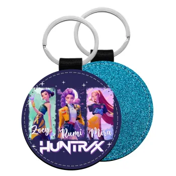 HUNTR/X K-pop girl group, Μπρελόκ Δερματίνη, στρογγυλό ΜΠΛΕ (5cm)