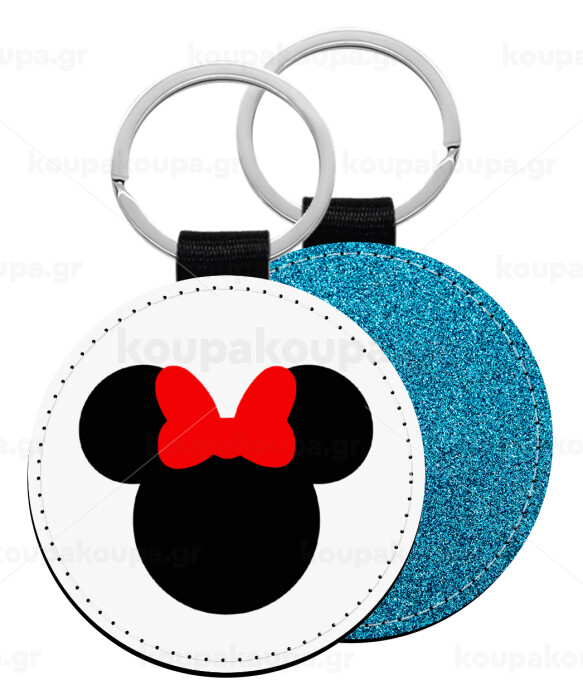 Minnie head, Μπρελόκ Δερματίνη, στρογγυλό ΜΠΛΕ (5cm)