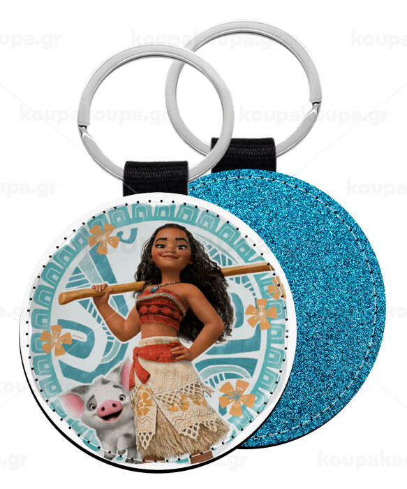 Moana, Μπρελόκ Δερματίνη, στρογγυλό ΜΠΛΕ (5cm)