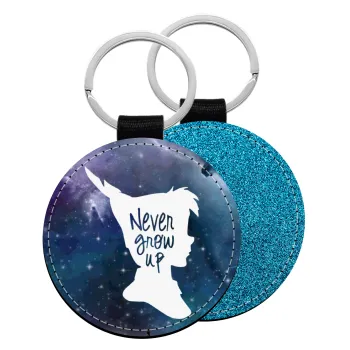 Never Grow UP, Μπρελόκ Δερματίνη, στρογγυλό ΜΠΛΕ (5cm)