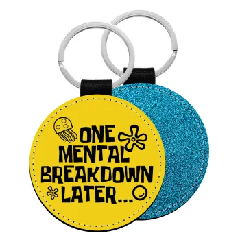 one mental breakdown later bob spongebob, Μπρελόκ Δερματίνη, στρογγυλό ΜΠΛΕ (5cm)