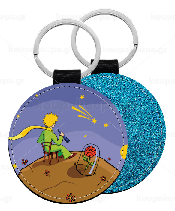 Ο μικρός πρίγκιπας planet, Μπρελόκ Δερματίνη, στρογγυλό ΜΠΛΕ (5cm)