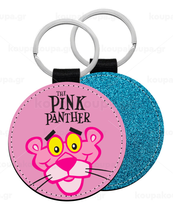The pink panther, Μπρελόκ Δερματίνη, στρογγυλό ΜΠΛΕ (5cm)