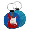 Guitar stratocaster, Μπρελόκ Δερματίνη, στρογγυλό ΜΠΛΕ (5cm)