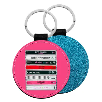 Maneskin Cassette, Μπρελόκ Δερματίνη, στρογγυλό ΜΠΛΕ (5cm)