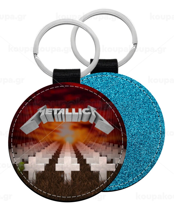 Metallica master of puppets cover, Μπρελόκ Δερματίνη, στρογγυλό ΜΠΛΕ (5cm)