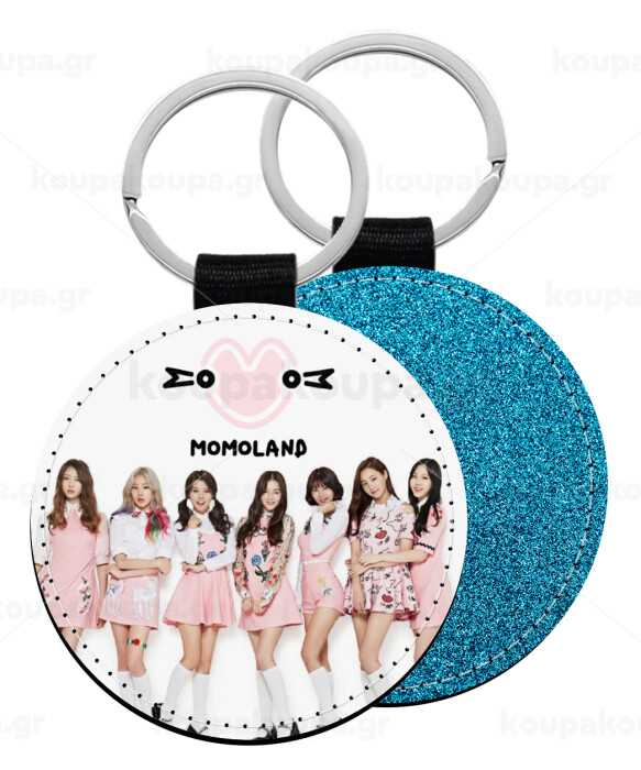 Momoland pink, Μπρελόκ Δερματίνη, στρογγυλό ΜΠΛΕ (5cm)