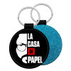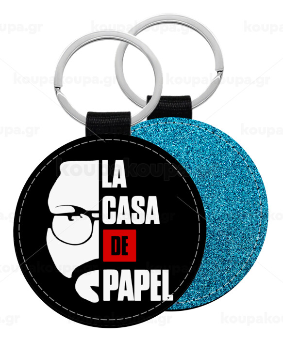 La casa de papel, Μπρελόκ Δερματίνη, στρογγυλό ΜΠΛΕ (5cm)
