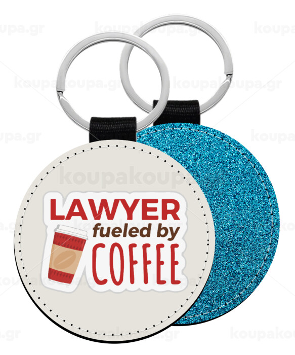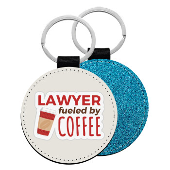 Lawyer fueled by coffee, Μπρελόκ Δερματίνη, στρογγυλό ΜΠΛΕ (5cm)