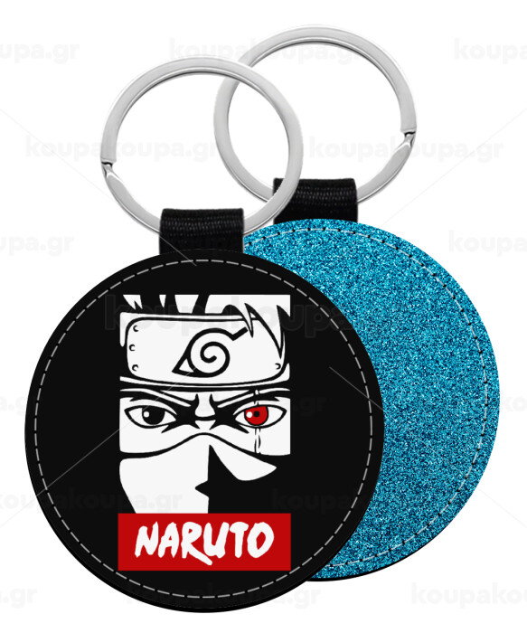 Naruto anime, Μπρελόκ Δερματίνη, στρογγυλό ΜΠΛΕ (5cm)
