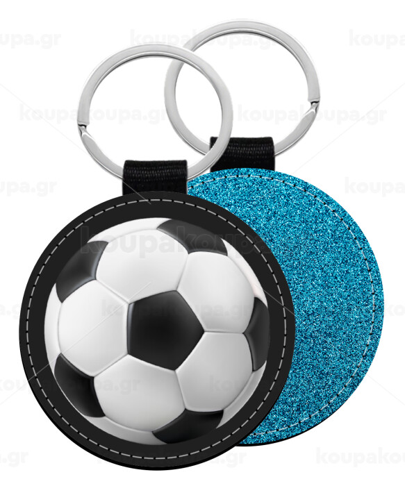 Μπάλα ποδοσφαίρου, Μπρελόκ Δερματίνη, στρογγυλό ΜΠΛΕ (5cm)