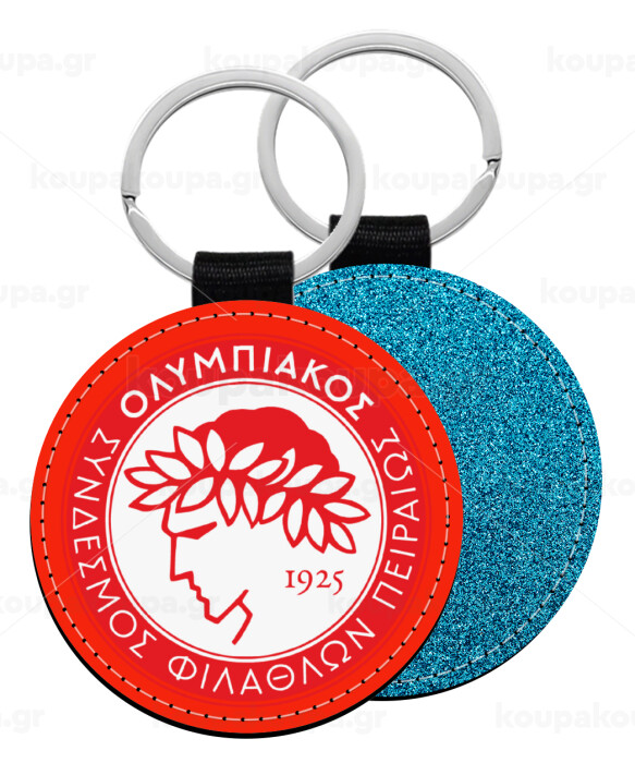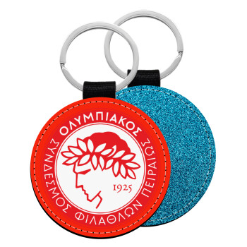 Ολυμπιακός, Μπρελόκ Δερματίνη, στρογγυλό ΜΠΛΕ (5cm)