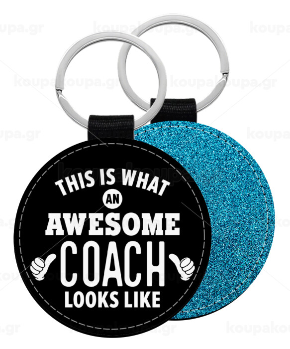 This is what an awesome COACH looks like!, Μπρελόκ Δερματίνη, στρογγυλό ΜΠΛΕ (5cm)