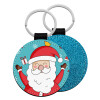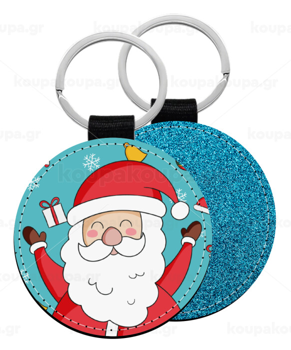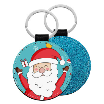 Santa Claus gifts, Μπρελόκ Δερματίνη, στρογγυλό ΜΠΛΕ (5cm)