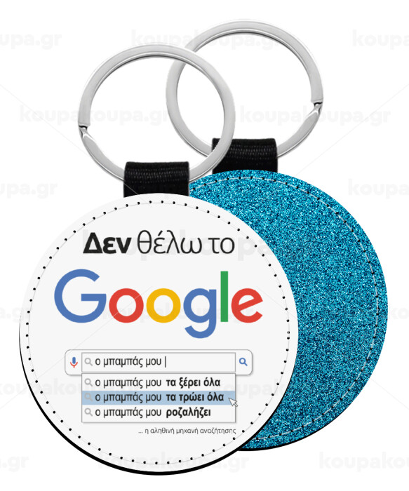 Δεν θέλω το Google, ο μπαμπάς μου..., Μπρελόκ Δερματίνη, στρογγυλό ΜΠΛΕ (5cm)