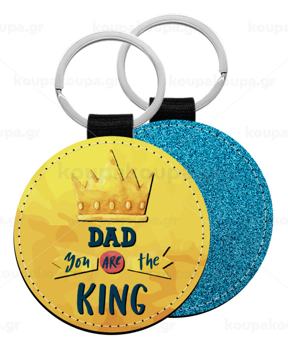 Dad you are the King, Μπρελόκ Δερματίνη, στρογγυλό ΜΠΛΕ (5cm)