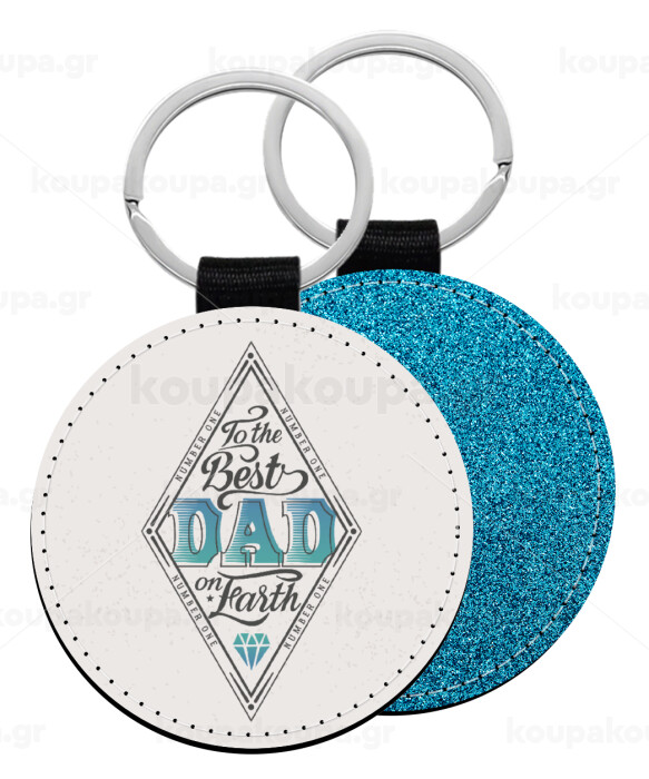 To the best DAD on earth, Μπρελόκ Δερματίνη, στρογγυλό ΜΠΛΕ (5cm)