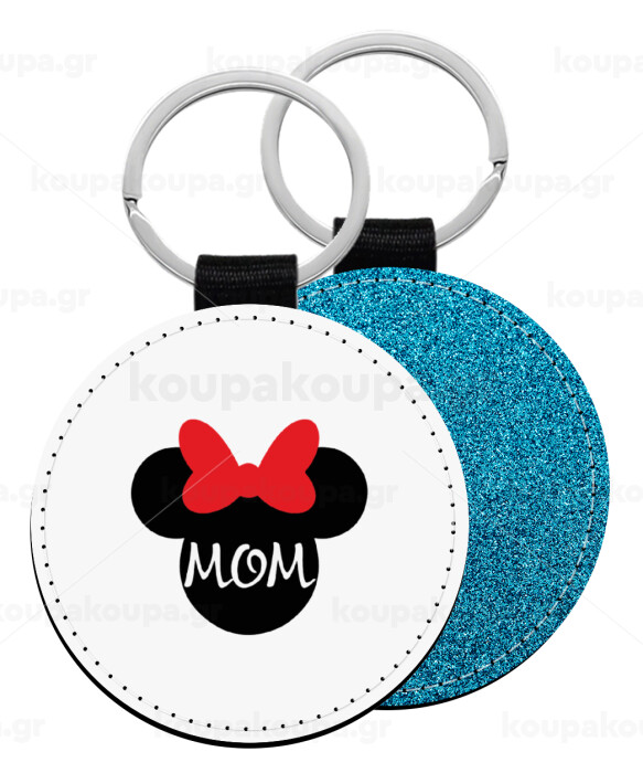 mini mom, Μπρελόκ Δερματίνη, στρογγυλό ΜΠΛΕ (5cm)