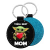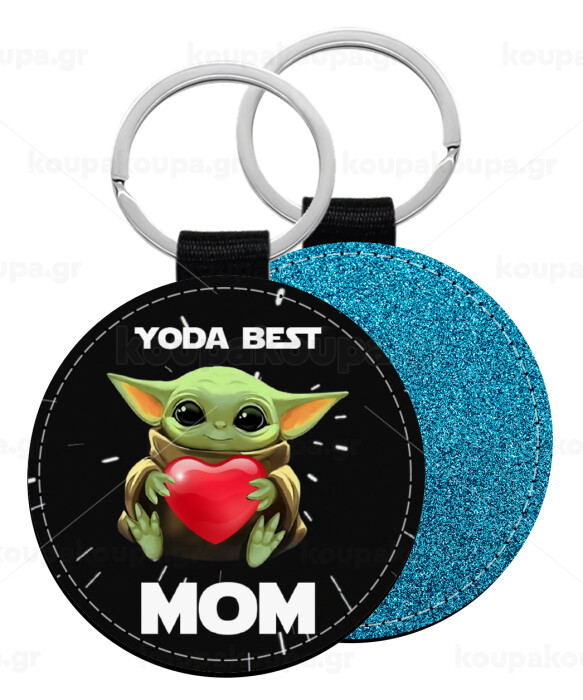 Yoda Best mom, Μπρελόκ Δερματίνη, στρογγυλό ΜΠΛΕ (5cm)