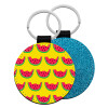 Mπρελόκ από δερματίνη με glitter στην μία πλευρά και στην άλλη δερματίνη μεγάλης αντοχής. Κρίκος ασφάλειας για τα κλειδιά.