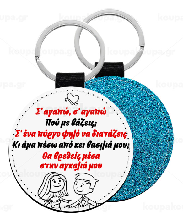 Σ΄ αγαπώ σ΄ αγαπώ που με βάζεις, Μπρελόκ Δερματίνη, στρογγυλό ΜΠΛΕ (5cm)