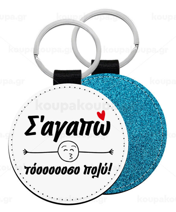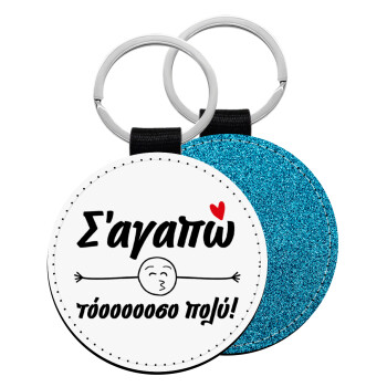 Σ΄ αγαπώ τόοοοοοσο πολύ!!!, Μπρελόκ Δερματίνη, στρογγυλό ΜΠΛΕ (5cm)