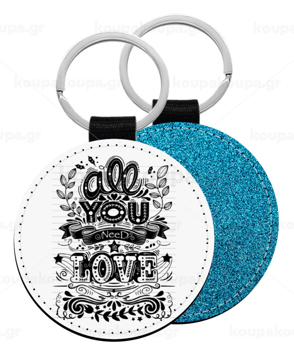All you need is love, Μπρελόκ Δερματίνη, στρογγυλό ΜΠΛΕ (5cm)