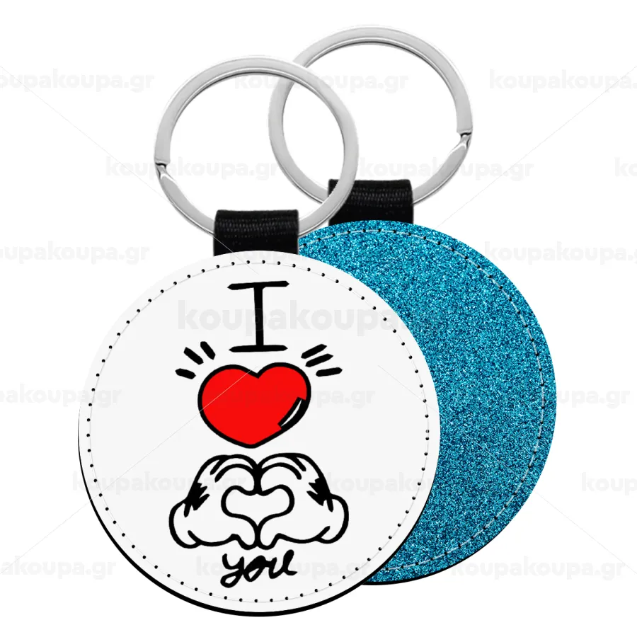 comics hands love, Μπρελόκ Δερματίνη, στρογγυλό ΜΠΛΕ (5cm)
