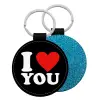 I LOVE YOU, Μπρελόκ Δερματίνη, στρογγυλό ΜΠΛΕ (5cm)