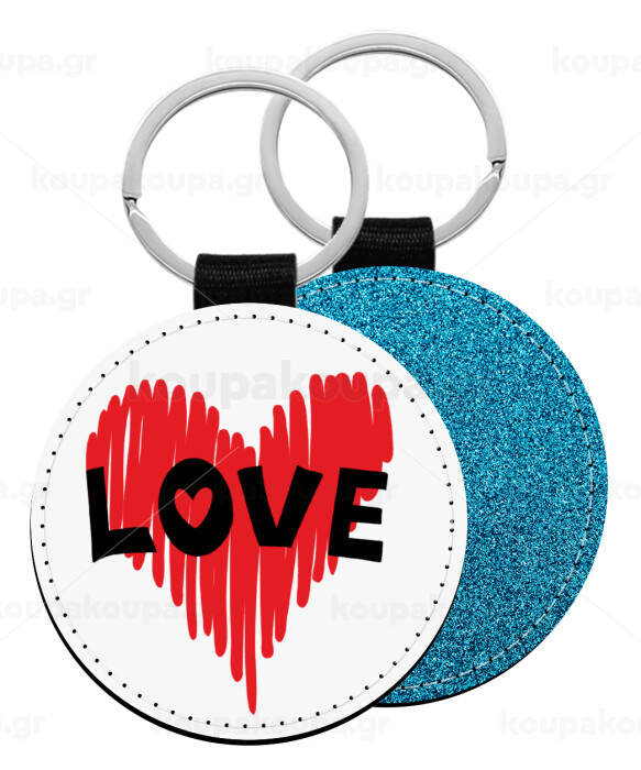 I Love You red heart, Μπρελόκ Δερματίνη, στρογγυλό ΜΠΛΕ (5cm)