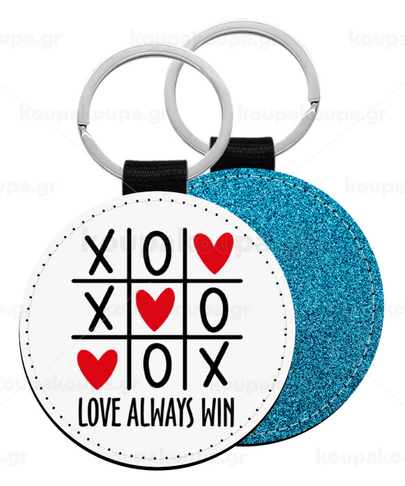 Love always win, Μπρελόκ Δερματίνη, στρογγυλό ΜΠΛΕ (5cm)