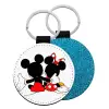 mickey and minnie hags, Μπρελόκ Δερματίνη, στρογγυλό ΜΠΛΕ (5cm)
