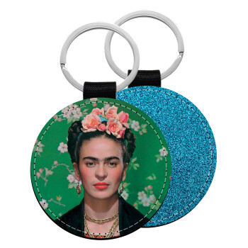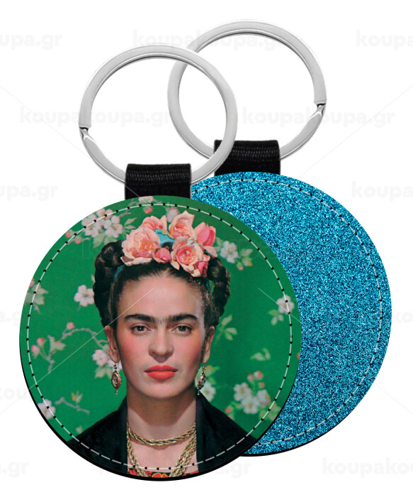 Frida Kahlo, Μπρελόκ Δερματίνη, στρογγυλό ΜΠΛΕ (5cm)