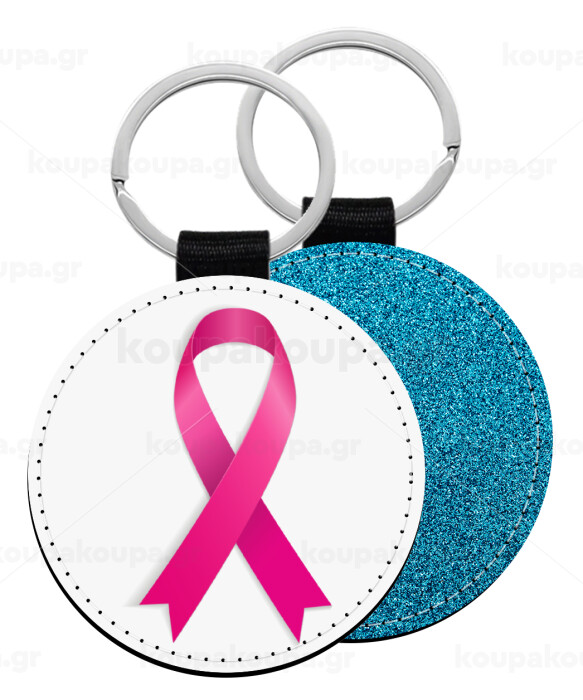 Παγκόσμια Ημέρα κατά του Καρκίνου, Μπρελόκ Δερματίνη, στρογγυλό ΜΠΛΕ (5cm)